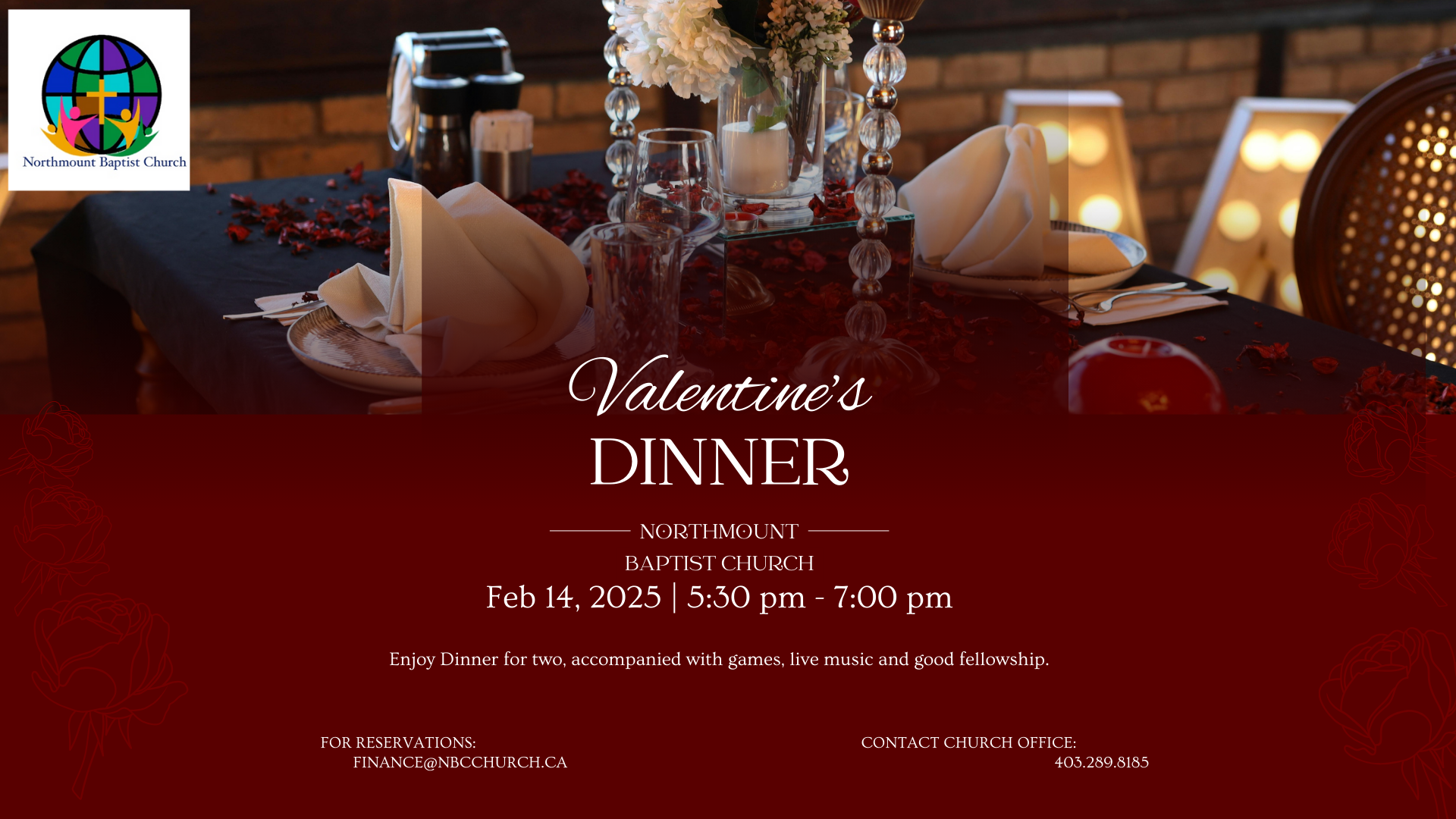 Join other couples’ for a night to celebrate God’s love. With live music from D’Apostolic Band, this will be a night of fun, games, fellowship and good food.
