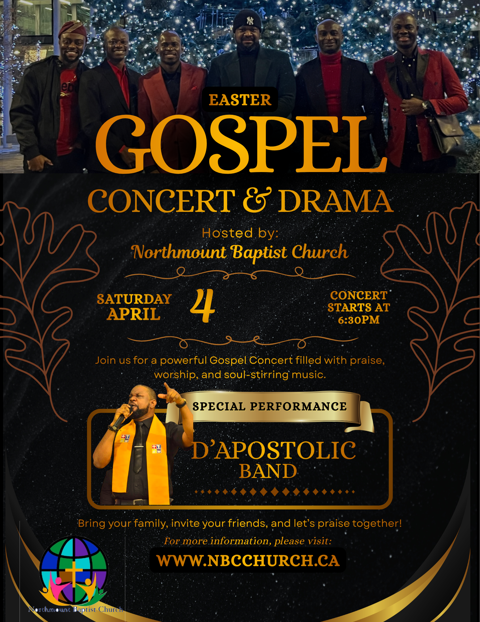 Easter Concert and Drama Concert and a Play! Join us for an evening of worship and celebration of God’s Love. Come and watch a modern adaptation of the love of God as he sacrificed himself for us. “The Stranger Who Took The Fall” is a short play. Date Apr 04 2026 Expiré ! L'heure 18 h 30 - 20 h 00 Heure locale Fuseau horaire : Amérique/New_York Date: Apr 04 2026 Heure : 20 h 30 - 22 h 00 Localisation Église baptiste de Northmount 451 Northmount Drive NW, Calgary, AB T2K3H8 Site web https://nbcchurch.ca Catégorie Concerts Sensibilisation Organisateur Église baptiste de Northmount Téléphone 4032898185 Courriel office@nbcchurch.ca Site web NBC Partager cet événement Recherche de :